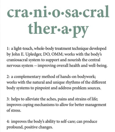 At my practice, I specialize in craniosacral therapy, a gentle healing touch that supports your body's natural healing processes and promotes balance within the nervous system.